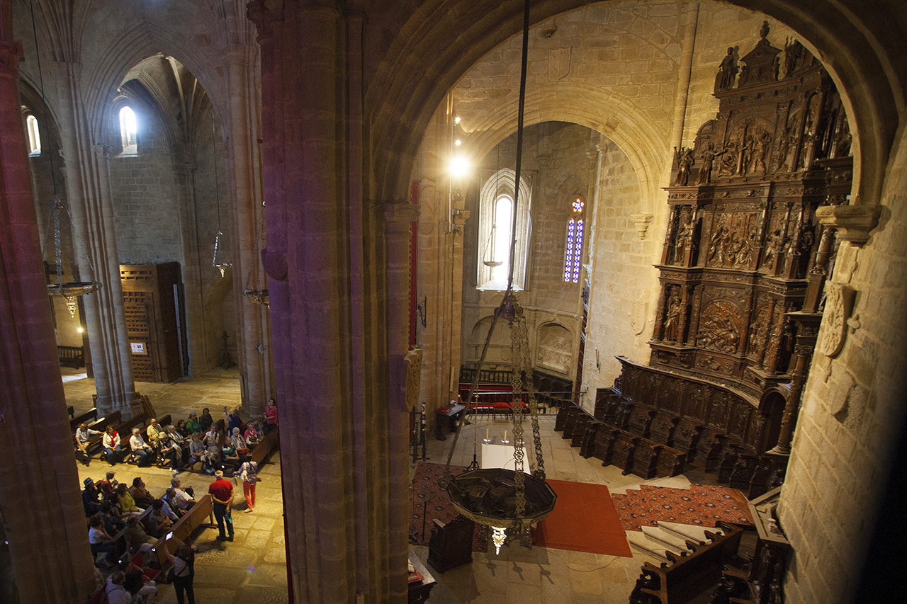 Inside the church is divided up into three naves and the belltower. Go up the spiral staircase and you will be able to enjoy one of the best views of the city and above all, the monumental centre of Cáceres.