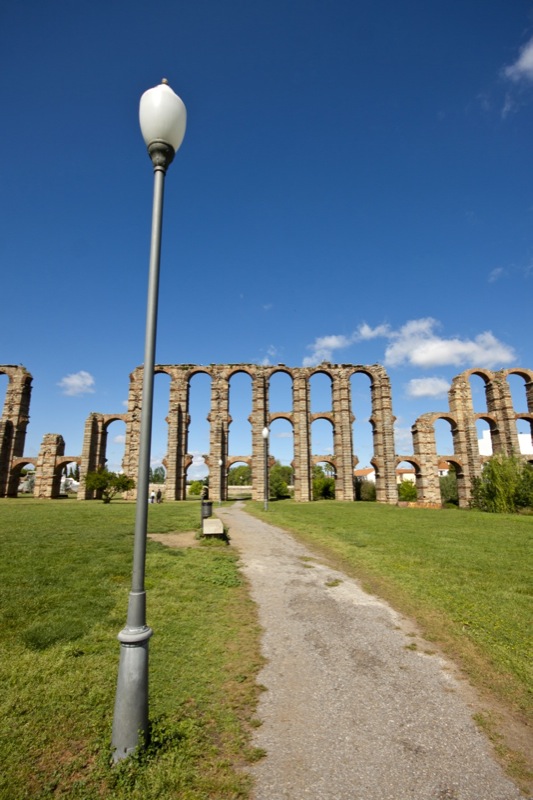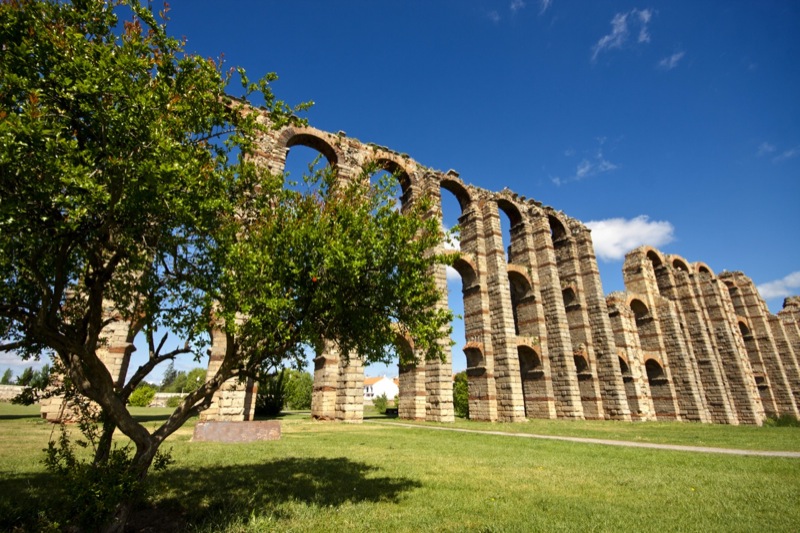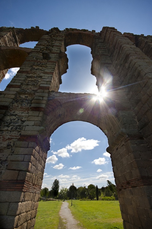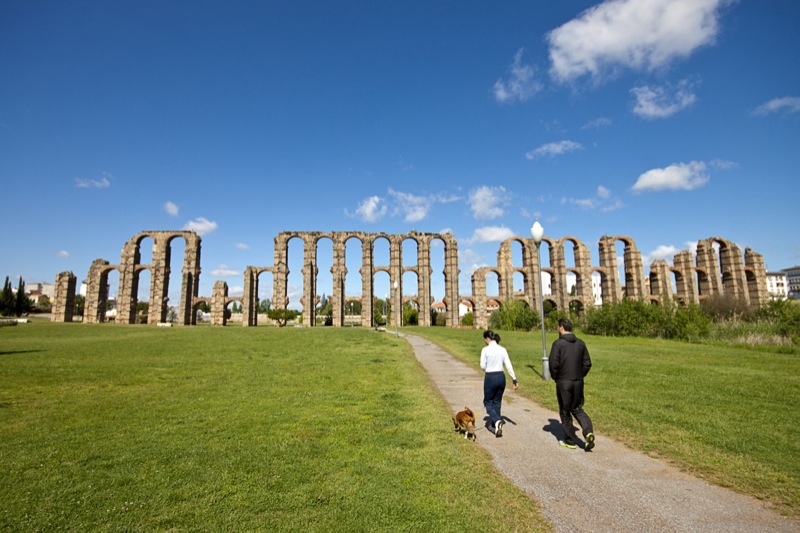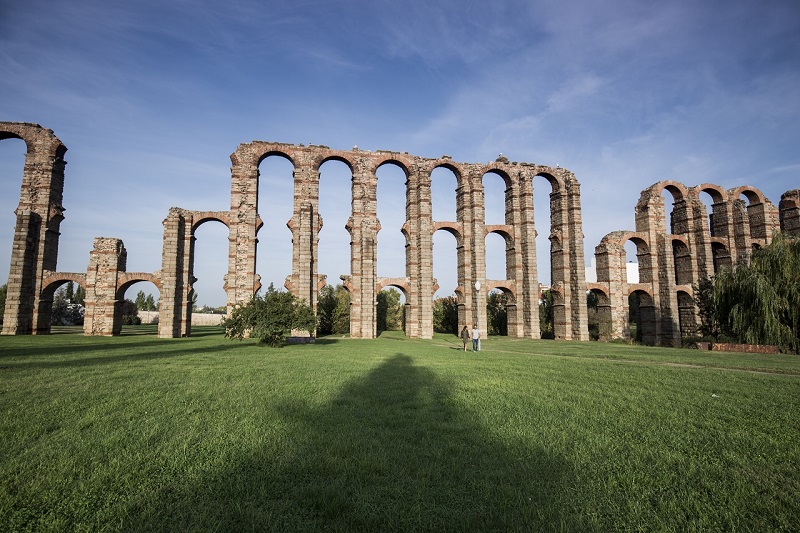 The aqueduct is surrounded by an extensive area of greenery which is pleasant for walking and doing sports. Nearby, we can admire another Roman work, the bridge over the Albarregas River, which is not very long and has a nice dressed façade, which marked the northern exit from the city by the famous Silver Way. -