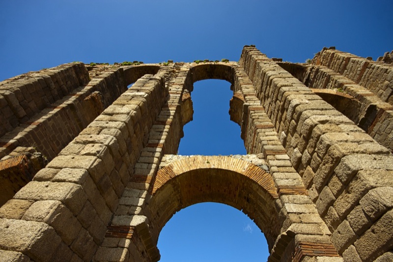 This partially preserved massive aqueduct was one of the large works at Emerita Augusta for supplying water to the city.