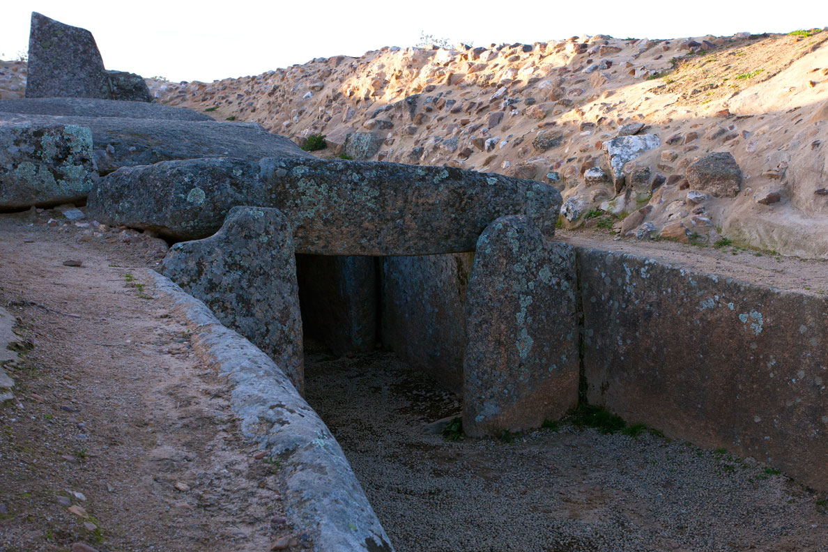 Lo primero que descubrirás al visitarlo, será un largo corredor de unos 20 metros aproximadamente que se divide en tres partes. Su función era la de dar acceso a la cámara funeraria en sí, que encontrarás al final de su recorrido. Esta cámara, formada por cinco gigantescas piezas de granito de más de 5 metros de altura, es de planta poligonal y tiene unos 5 metros de diámetro.